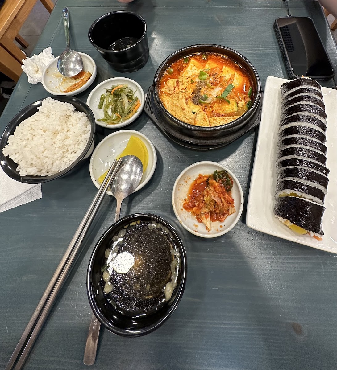 For those craving a light yet flavorful meal, the Tofu Jiggae (Tofu Stew) offers a delightful vegetarian option, filled with rich, hearty tofu in a gently spiced broth that leaves a lasting impression. And don't miss the 紫菜包飯 (gimbap), a Korean-style sushi roll stuffed with a variety of ingredients, from vegetables to meat, for a satisfying bite in every mouthful.